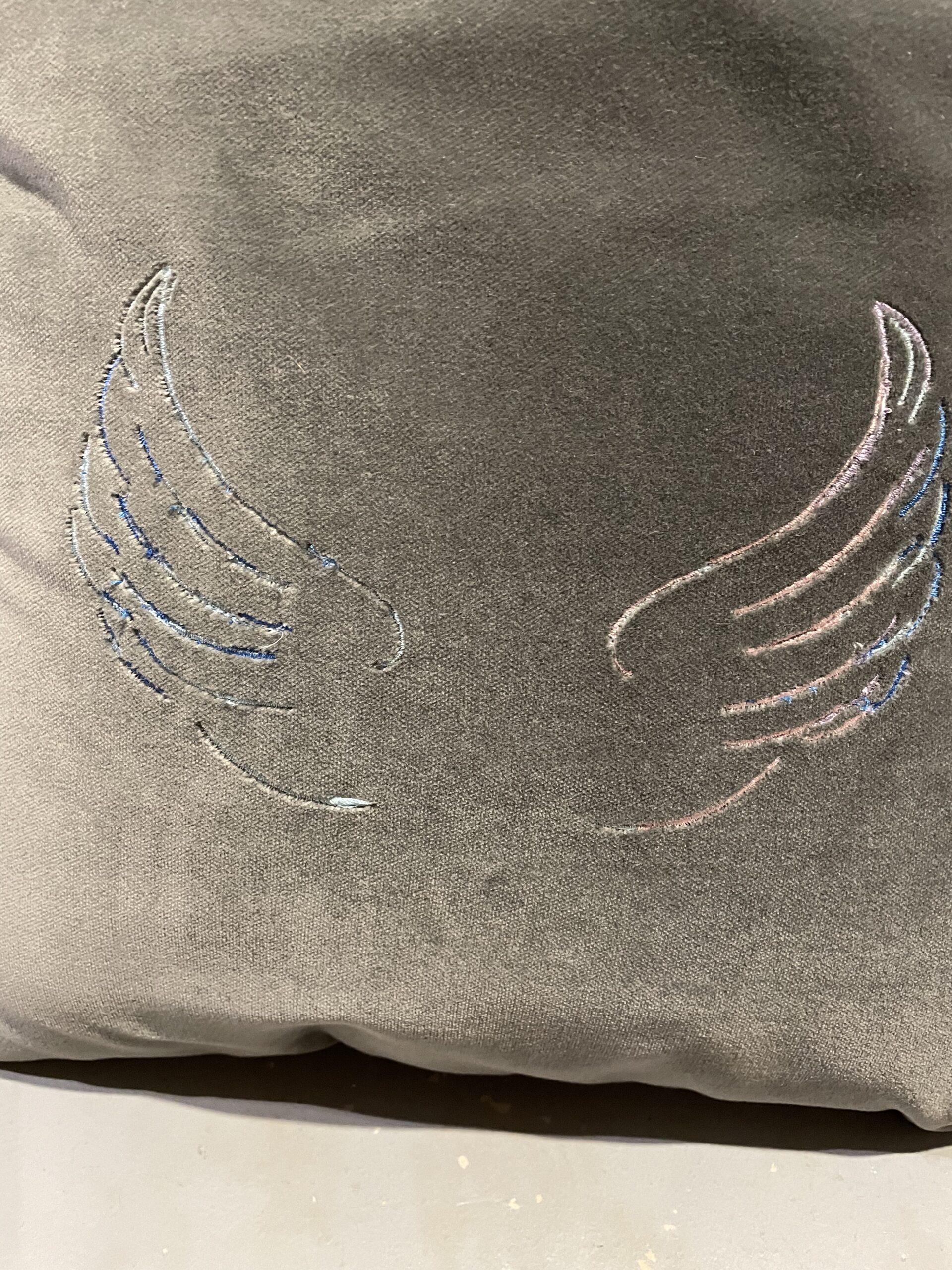 Engel Flügel, gestickt auf Samt, erinnern dich daran, dass die Engel für dich da sind.